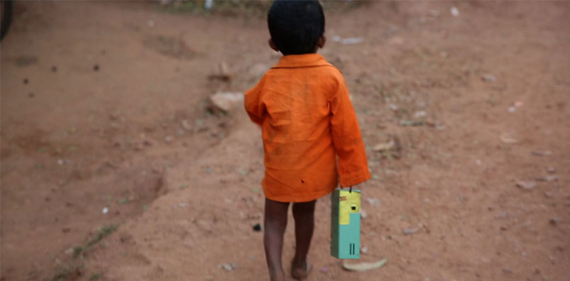 This particular project uses solar power to charge portable battery boxes that are picked up by individual households to meet their basic lighting needs. Solar panels are mounted on the roof of Shankar’s house with the battery bank and charge controllers installed inside the house to recharge portable boxes. The households collect these boxes in the evening and give it back to Shankar in the morning to be recharged. They pay rent on a weekly basis depending on the usage. This rent amount helps Shankar repay his bank loan installments.